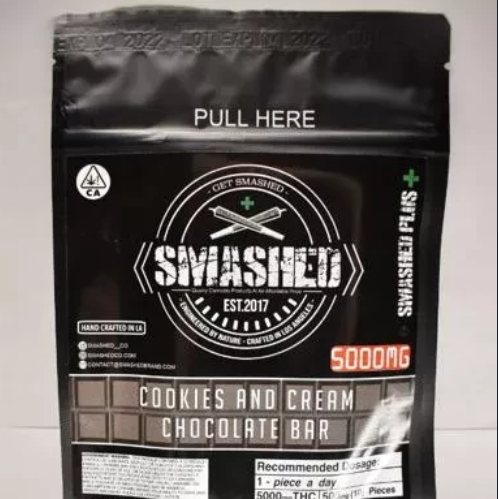 Smashed Chocolate Bars are handmade with care in Los Angeles. These sweet bars are a great alternative for those who want to get the benefits of THC without smoking. Easy and convenient to munch on anywhere, anytime! The bar contains a total of 1000mg THC.